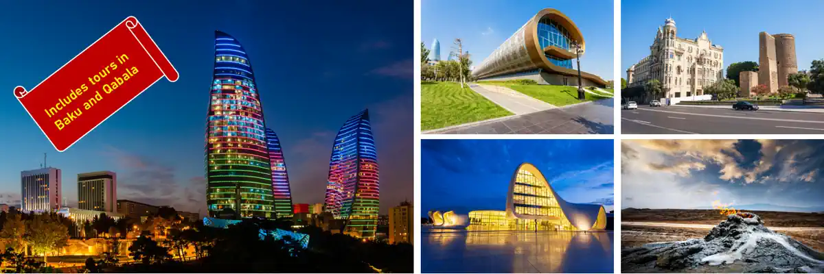 Full service package for Baku, Azerbaijan with included flights, accommodation with breakfast for 6 nights and tours as described in the itinerary. Optional tours can be added at extra price.